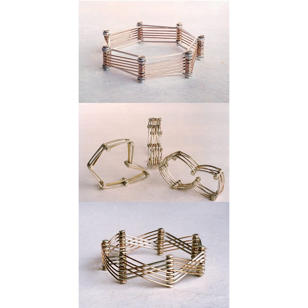 Après 15 années de créations en Bijou d’Art Contemporain, j’ai voulu chercher plus loin et développer un travail toujours axé sur le corps humain, mais sans les contraintes fonctionnelles du bijou. Au départ, c’est l’énergie issue du mouvement de la forme qui m’interpellait. De cette approche sont issues les Structures Graphiques. Le corps est absorbé par le mouvement et ses mouvements sont rendus de manière linéaire. Peu à peu, la ligne s'est assouplie et le corps humain a pris forme grâce au dessin. Des silhouettes en mouvance, à la rencontre ou dans l’éloignement d’autres silhouettes en mouvance. Ce sont surtout les mouvements des silhouettes dans l’espace qui m’inspirent. La relation qui s’établit entre elles est ce qui engendre l’espace perçu et lui donne un sens, un espace inter relationnel en constante mutation, une géographie humaine fluctuante. Depuis mes premières créations en bijoux d’art contemporain (architecture sur le corps), en passant par les Structures Graphiques (le mouvement du corps absorbé par la ligne) jusqu’aux Chorégraphies du Quotidien (le corps dans l’espace), l’humain reste ma préoccupation centrale, qu’elle soit sociale ou spirituelle. Na vijftien succesvolle jaren als ontwerpster van hedendaagse juwelen ben ik me vooral laten inspireren door het menselijk lichaam zonder de functionele beperkingen van het juweel. Aanvankelijk was ik geïntrigeerd door de beweging als energie. Dit leidde tot de Grafische Structuren. De beweging van het lichaam wordt lineair weergegeven. Langzaam heeft het lichaam vorm gekregen dankzij mijn tekeningen van bewegende silhouetten die dichter bij elkaar komen of net zich van elkaar verwijderen. De bewegingen van de silhouetten en de dynamiek die daarbij ontstaat schept een interrelationele ruimte die voortdurend zich anders omvormd in een muterend menselijke geografie. Sinds mijn hedendaage kunstjuwelen (architectuur op het lichaam), de Grafische Structuren (lichaambewegingen als strakke energie lijnen uitgedrukt) tot de heden Dagdagelijkse Choreografieën ( ruimte en lichaam) is mijn belang voor de Mens altijd centraal gebleven. After 15 years of successful Contemporary Art Jewellery, I decided 10 years ago to take it a step further and develop a body of work still inspired by the human body, but without the inherent functional aspect of jewellery. At first, it was the movement as energy that interested me. From it came the Graphic Structures. The movement of the body is rendered by straight lines that meet or recede. But slowly the human shape started to emerge, thanks to my drawings. Silhouettes on the move, in space or relating to each other. It is the movements of the silhouettes in space and their interactions that generate an interrelational space in constant mutation, a fluctuating human geography. Since I started with the Contemporary Art Jewellery (body architecture), followed by the Graphic Structures (the body movement is absorbed by the straight line) to the Choreographies of everyday life (body and space), what is human has remained my main preoccupation. Marie Lechat Dessin dans l'espace Voir tous les articles par Marie Lechat